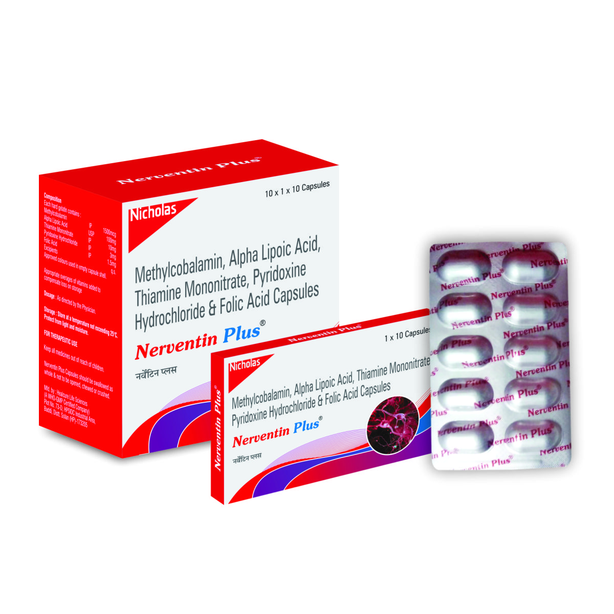 Nerventin Plus Caps is a nutritional supplement designed to support nerve health, improve neurological function, and reduce nerve-related discomfort. It combines Methylcobalamin, Alpha Lipoic Acid, Thiamine, Folic Acid, and Vitamin B6 for comprehensive nerve support.