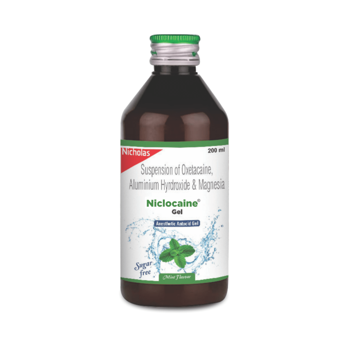"Niclocaine sugar-free gel is an antacid. It relieves symptoms like acidity, heartburn, stomach pain, etc., associated with stomach ulcers and acid reflux. It contains a combination of aluminium hydroxide, magnesium hydroxide and oxetacaine.