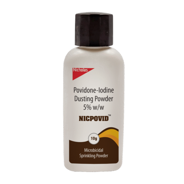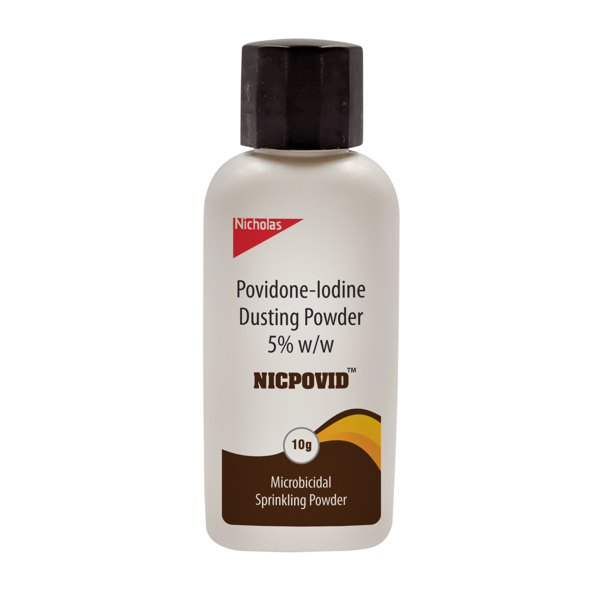 Nicpovid powder is an antiseptic. It is used applied on the skin infected or which is likely to get infected. It works by slowly releasing iodine which kills or prevent the growth of infectious microbes.