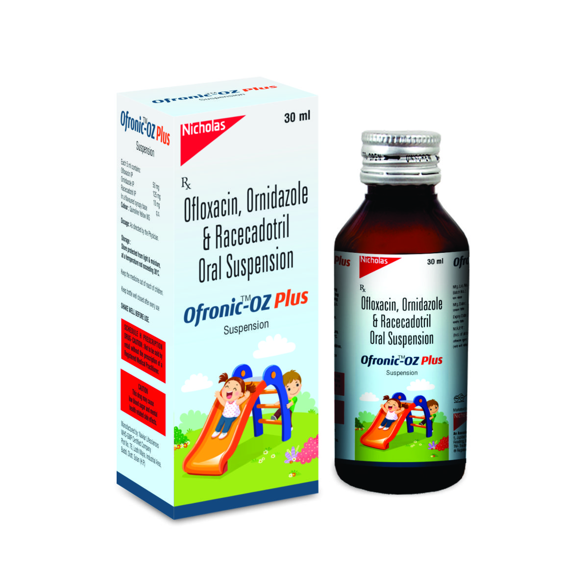 Ofronic OZ Plus Suspension is a pediatric combination formulation containing Ofloxacin, Ornidazole and Racecadotril. It is formulated to manage infective diarrhea and gastrointestinal disturbances in children. It gives the comprehensive approach by targeting infection-causing bacteria and protozoa while controlling excessive fluid loss from the intestines.