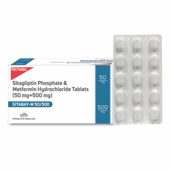 Sitabay -M 50/500 tablet contains sitagliptin 50mg and metformin 500mg. It is used to control the high blood sugar level in people with type-2 diabetes mellitus. This helps prevent serious complications of diabetes, such as kidney damage and blindness and may reduce your chances of having a heart attack or stroke.