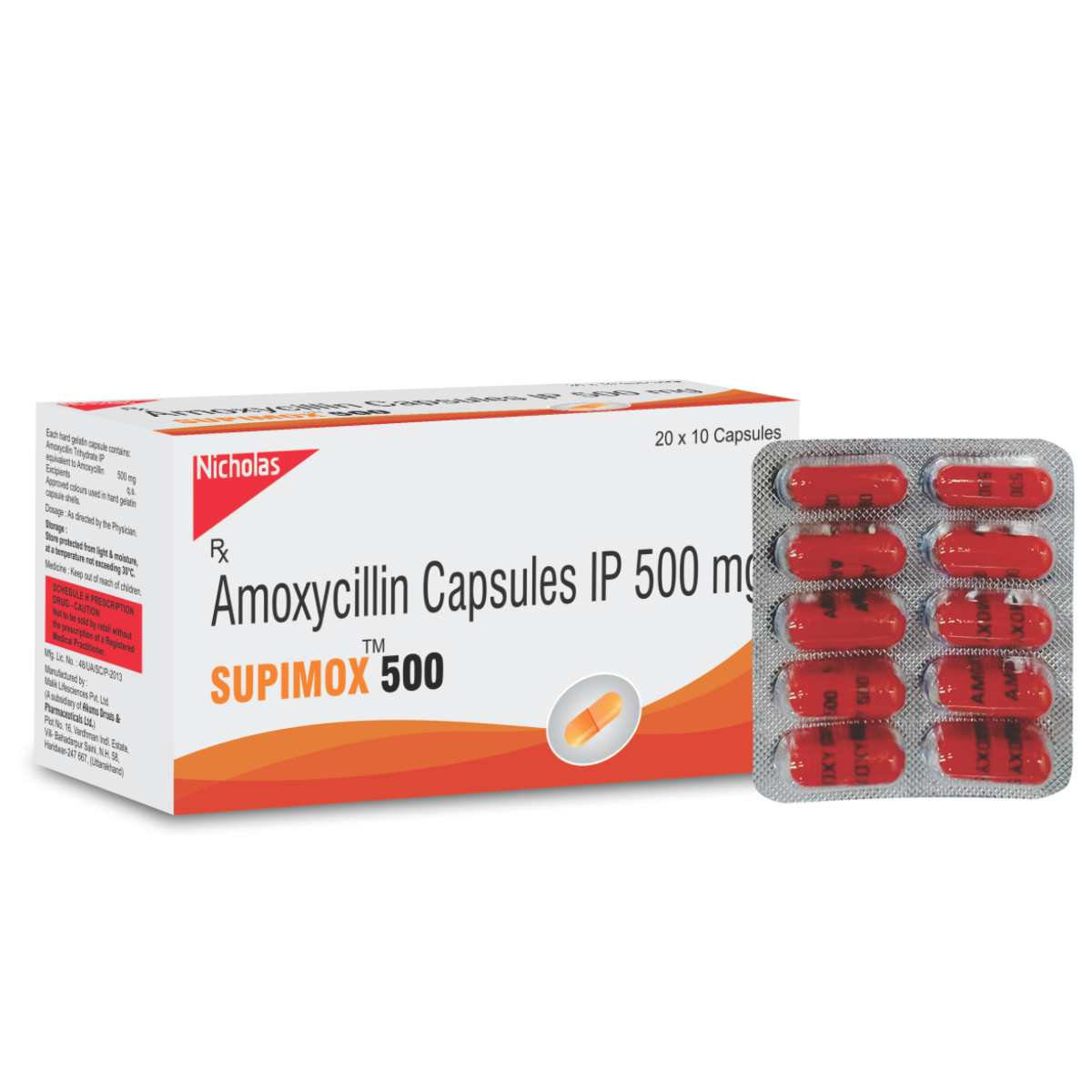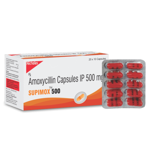 Supimox is a brand name for a medication containing amoxycillin, which is a broad spectrum antibiotic used to treat a variety of bacterial infections. It is effective in the treatment of infections such as infections of throat, ear, nasal sinuses, respiratory tract, urinary tract, skin, soft tissue and typhoid fever.