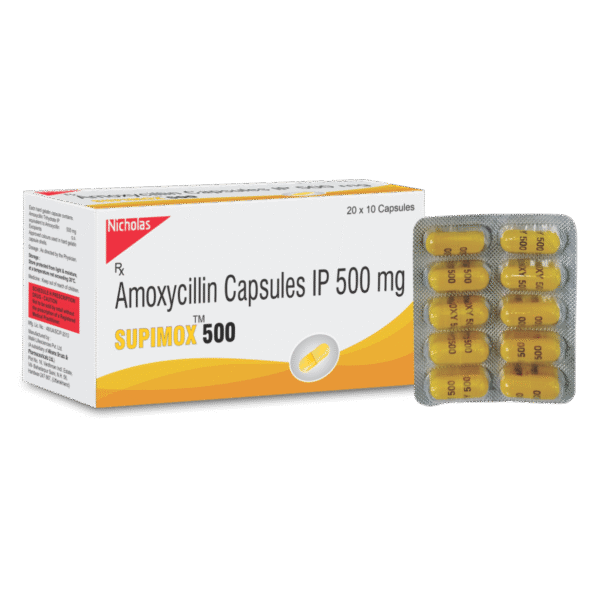 Supimox is a brand name for a medication containing amoxycillin, which is a broad spectrum antibiotic used to treat a variety of bacterial infections. It is effective in the treatment of infections such as infections of throat, ear, nasal sinuses, respiratory tract, urinary tract, skin, soft tissue and typhoid fever.
