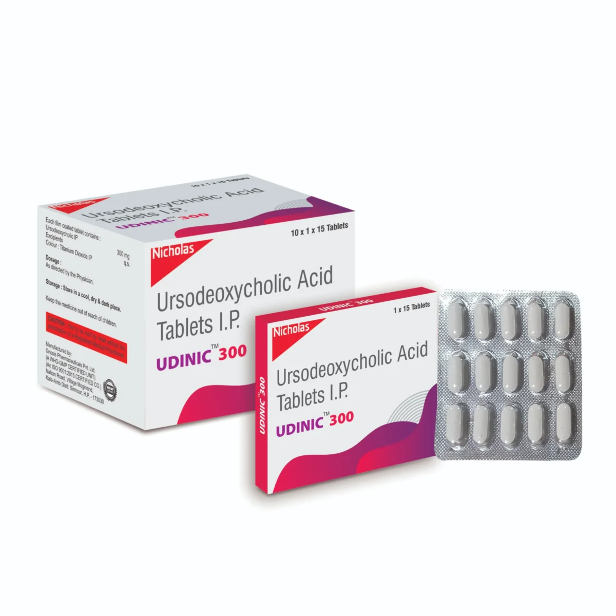 Udinic tablet contains Ursodeoxycholic Acid 300 mg, a bile acid used to manage certain liver and biliary tract disorders. It helps improve bile flow and reduces cholesterol saturation in bile, thereby supporting liver function and bile acid balance.