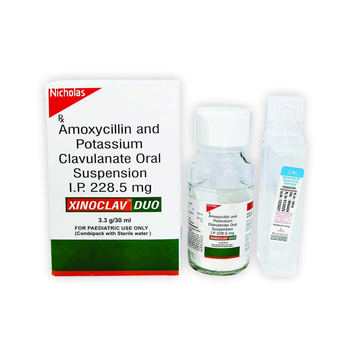 Xinoclav DUO dry syrup is a broad spectrum antibiotic containing amoxycillin 200mg and clavulanic acid 28.5mg. It is used to treat a wide range of bacterial infections, including those caused by resistant bacteria. It is commonly prescribed for children. It is available with Water for injection (WFI) for the reconstitution which enhances the stability of the product before mixing.